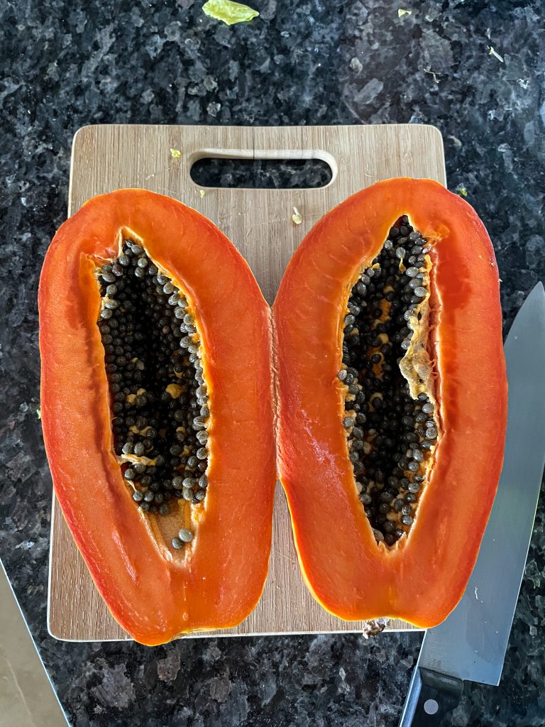 - 1/2 a papaya, skin off but keeping the seeds